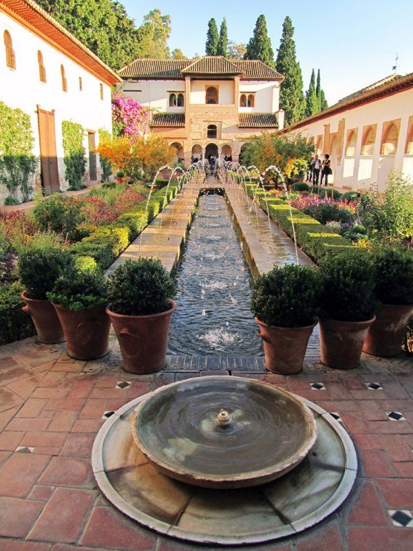 ja kalligrafiaa – kaikki Allahin ylistykseksi. Yhtä suuri elämys on linnoitusta vastapäätä sijaitseva Generalifen puutarha käytävineen, altaineen, suihkulähteineen ja muotoon leikattuine pensasaitoineen. Keski-