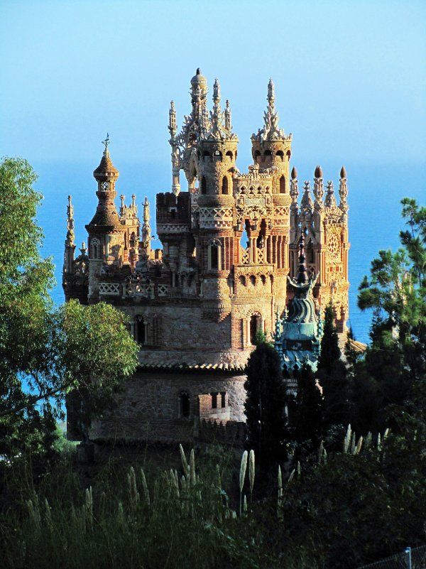 Pitsilinna Castillo de Colomares Benalmádena Pueblon kirkon alapuolella valmistui 1994 Kolumbuksen löytöretkien kunniaksi. Kolme miestä rakensi erilaisia arkkitehtonisia tyylejä edustavaa linnaa seitsemän vuotta.