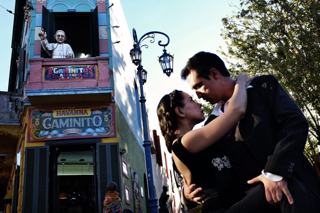 Läheisen Caminito-kadun satamarakennukset loistavat muita värikkäämpinä ja siellä voi tehdä myös laadukkaita matkamuisto-ostoksia. Pääsen laskuissani seitsemään, kun tarkastan kadulla pyörivien tangoesitysten määrän.