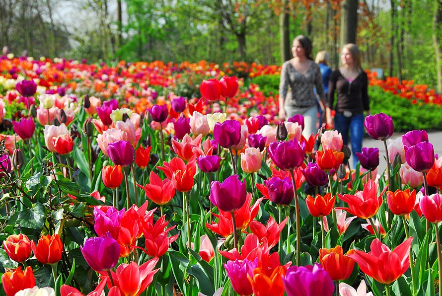 Sadat eri tulppaanilajit ja hyasintit loistavat kilpaa, lampiin sijoitetut suihkulähteet solisevat ja turistit vaeltelevat. Kaupassa myydään kukkasipuleita. Päärautatieaseman matkailuinfosta voi ostaa bussimatkan sisältävän Combi-lipun, jolla välttää jonottamisen puutarhan sisäänkäynnillä.