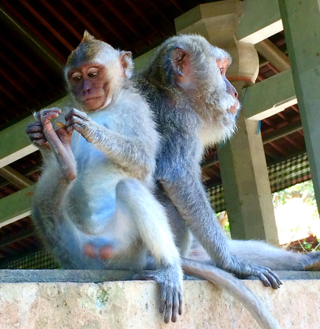 Mutta osaavat apinat olla suloisiakin. Erityisen hauskoja ne ovat Ubudin apinametsässä, jossa elää noin 600 yksilöä. Niiden elämää pääsee tarkkailemaan noin kahden euron lipulla.