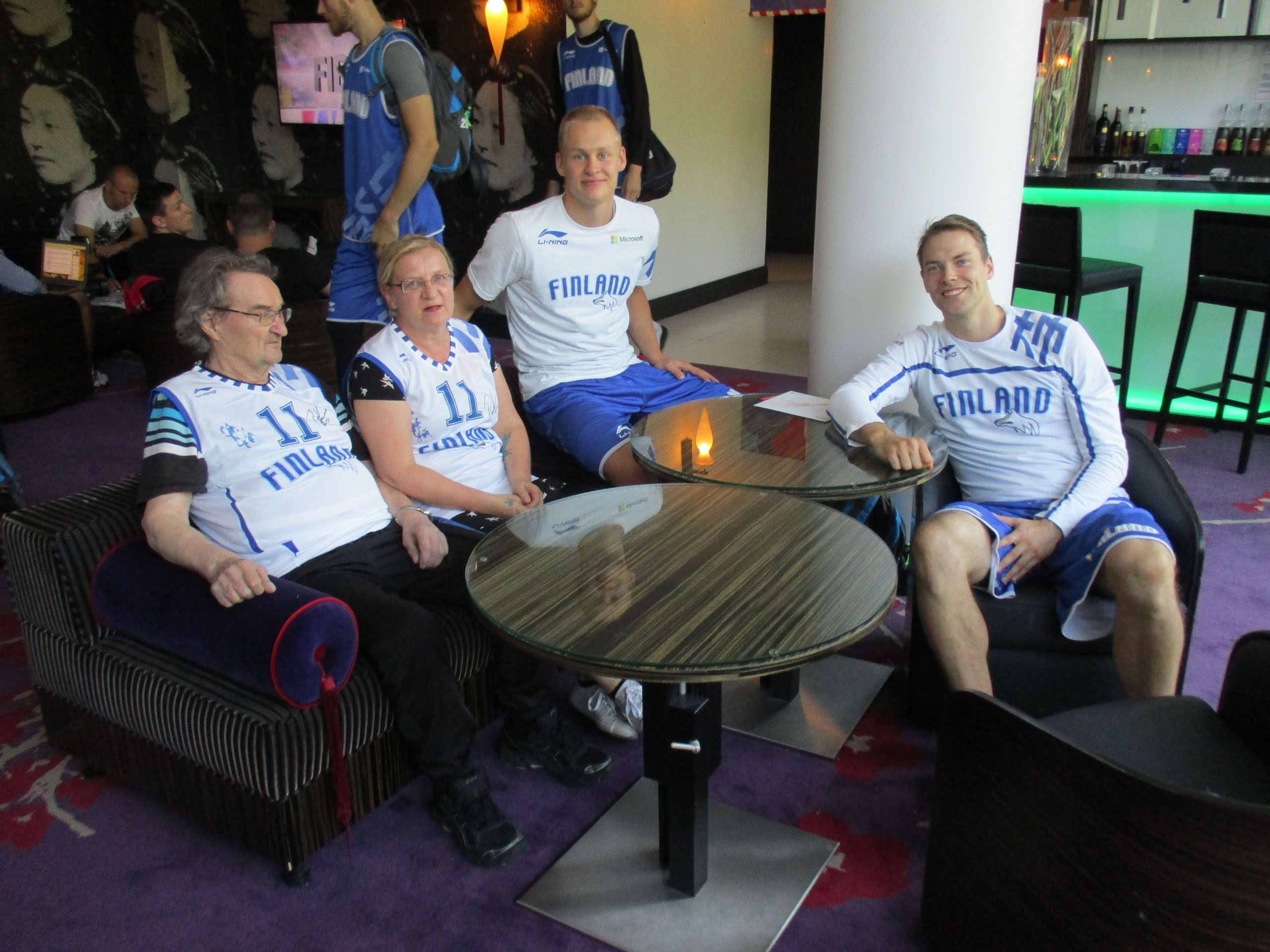Vielä otteluakin suurempi yllätys oli, kun Riitta ja Erkki pääsivät tapaamaan Suomen koripallomaajoukkuetta.