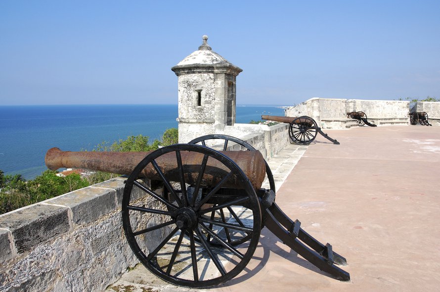 Päivän päätteeksi kuljen kahviloiden ja pikkupuotien reunustamalle kävelykadulle. Sen molemmissa päissä on portit, jotka olivat satoja vuosia sitten ainoat poistumistiet linnoituksesta. Puerta de Tierra -sisäänkäynnillä järjestetään iltaisin näyttävä valo- ja ääniesitys tykinlaukauksineen, kun taas meren puoleinen portti vie Malecón-rantabulevardille.