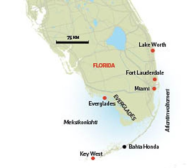 Florida tarjoaa lomalaiselle rutkasti silmäniloa, rantoja, luonnonpuistoja ja ostosparatiiseja. Viikossa ehtii Miamista Key Westin kautta Evergladesiin.