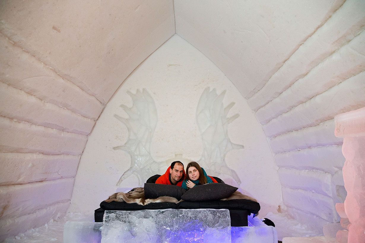 Haagin kaupungista saapunut pariskunta vietti yhden yön Arctic Royal Hotelin lumisviitissä ja toisen lasi-iglussa.