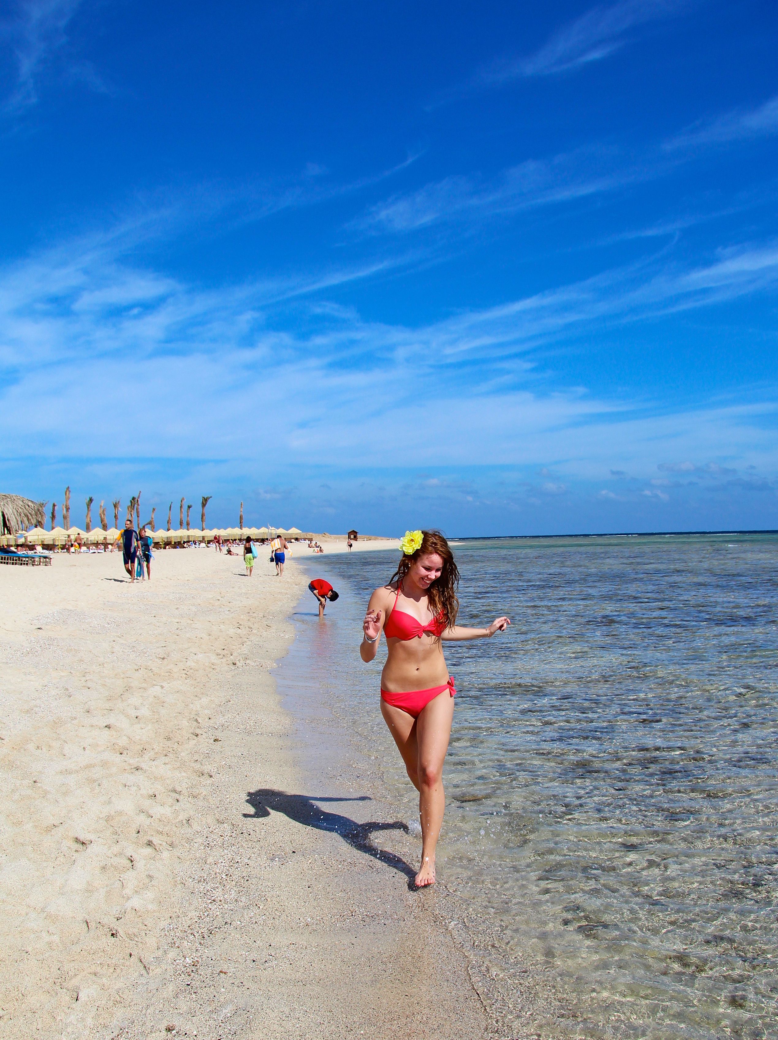 Marssimme kelluntaliiveihin ja räpylöihin pukeutuneena kohti Punaisenmeren aaltoja. Kastaudun lämpöiseen veteen ja testaan snorkkelia hieman epävarmana. Hengittäminen putken läpi on kuitenkin yllättävän helppoa. Tarkoituksemme on nähdä kilpikonnia, mutta ensikertalaiselle jo muutama kirjava kala kristallinkirkkaassa vedessä on elämys.