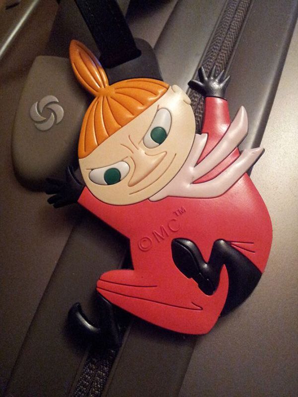 "Olimme sisareni kanssa Ateneumissa Tove Jansson näyttelyssä ja ostimme sieltä Muumi osoitelaput. Tämä osoitelappu on matkalaukussa aina kun reissaamme yhdessä."