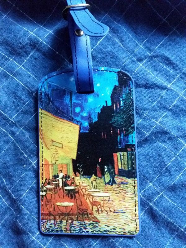 "Vincent van Gogh on suosikkitaiteilijani, joten olin todella iloinen löytäessäni Tampereen taidemuseon museokaupasta matkalaukun osoitekortin, jossa oli kuva hänen maalauksestaan. Maalauksen nimi on Öinen katukahvila ja van Gogh maalasi sen vuonna 1888. Odotan innolla seuraavaa matkaani, jolle voin ottaa palan Vincentiä mukaani!"