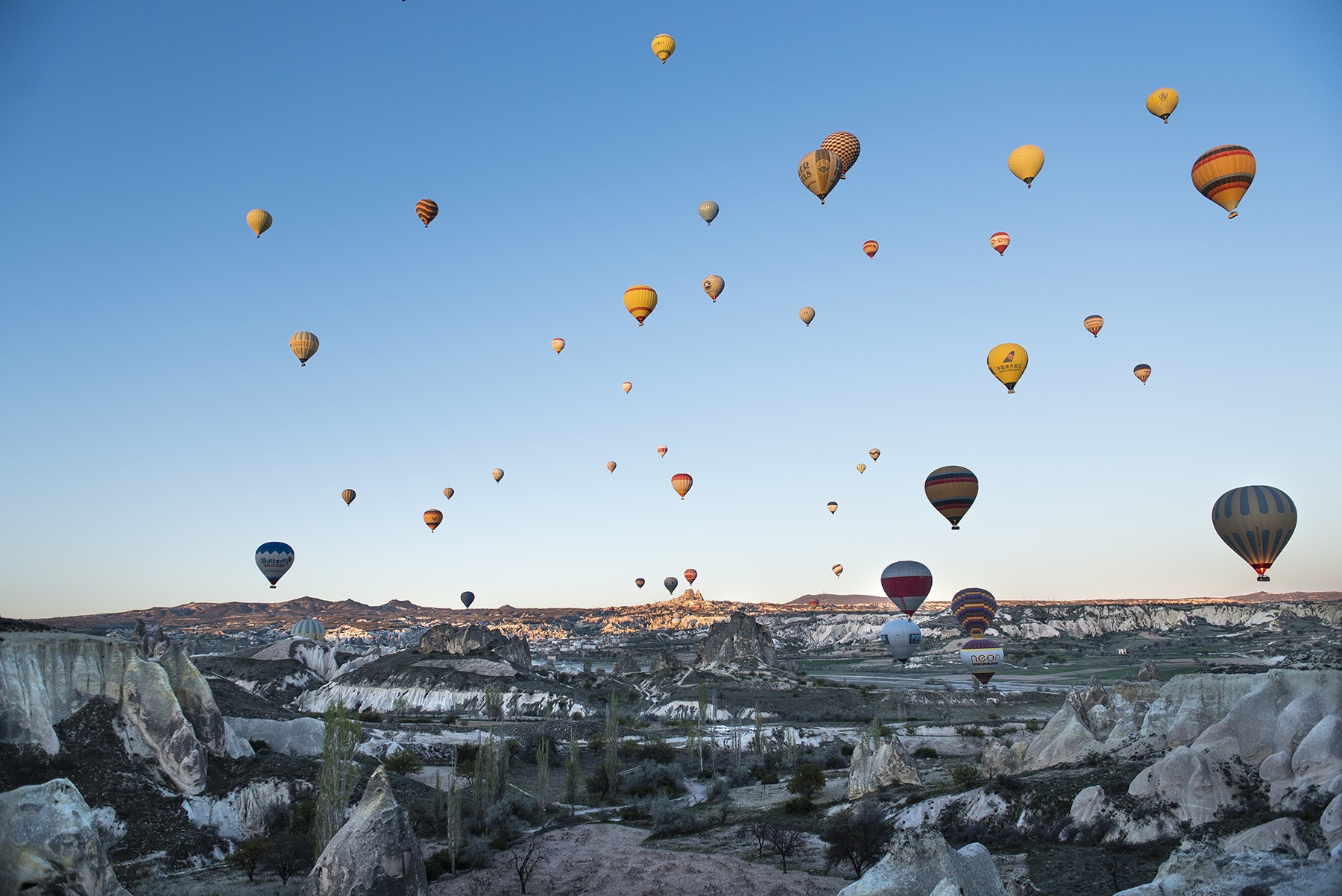Turkin Kappadokian vetonaula ovat kuumailmapallolennot: eri värisiä palloja saattaa olla taivaalla yhtä aikaa yli 60. ET:n reportterit nousivat kyytiin Uchisarissa. Auringon noustessa, kymmenien pallojen ympäröimänä, voi kokea olevansa osa ikimuistoista spektaakkelia.