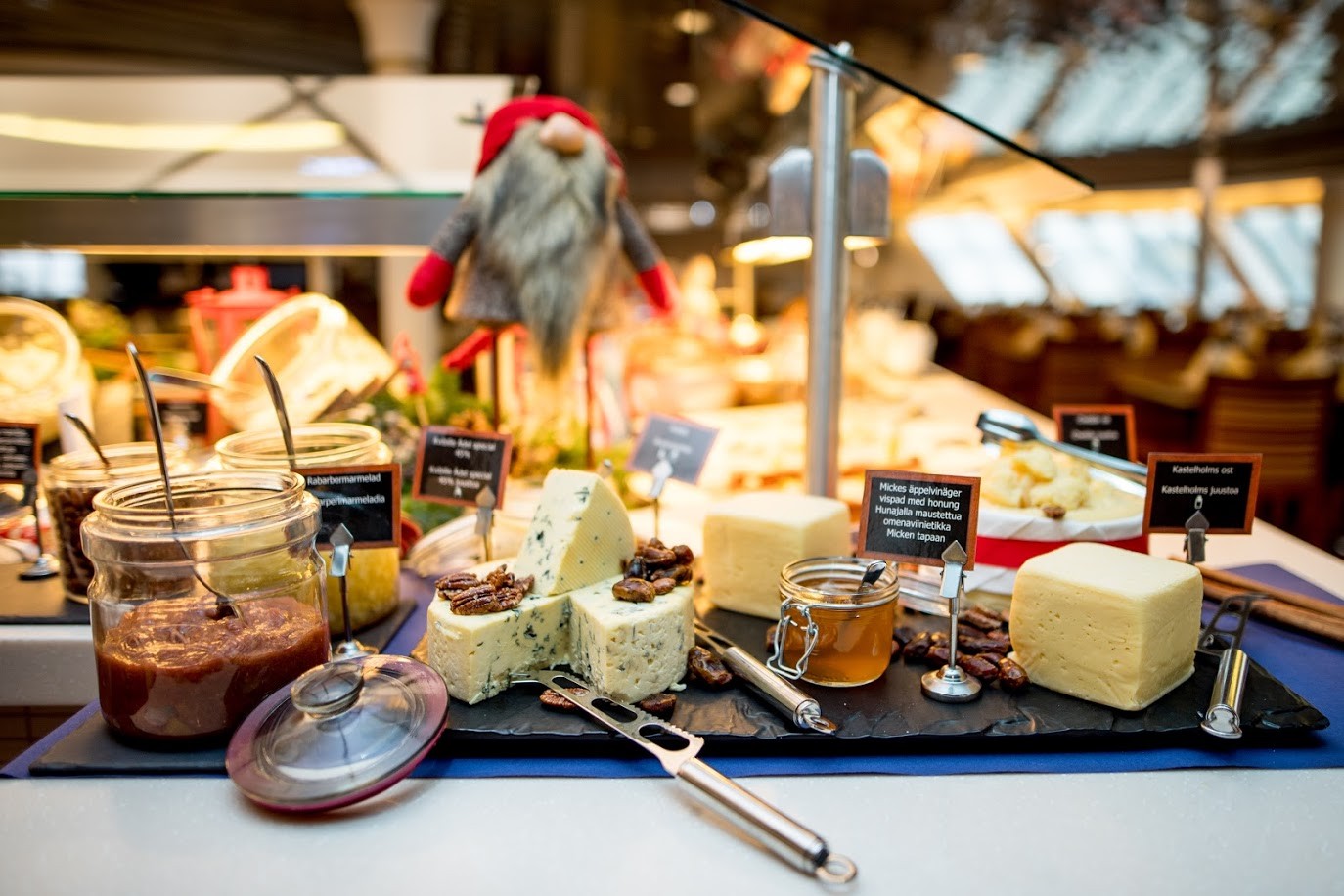 "Tänä vuonna TallinkSiljan joulubuffet-keskittyy erityisesti pohjoisiin makuihin eli suomalaisten ja ruotsalaisten rakastamiiin jouluherkkuihin. Tarjolla on runsaasti eri kaloja ja juustoja, lämpimiä ruokia unohtamatta.
