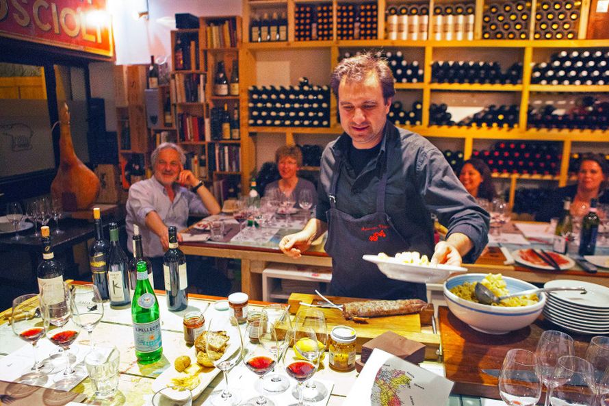 4. Alessandro Pepe vetää kymmenen hengen maisteluryhmiä Rosciolin ravintolan viininmaisteluhuoneessa Campo de’ Fiorin alueella. Illan aikana maistellaan viinejä, juustoja, leikkeleitä, pastaa ja jälkiruokia. Tilattava etu­käteen. Puh. +39 066 875 287. www.salumeriaroscioli.com