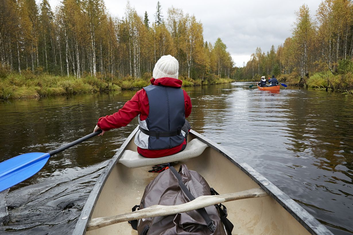 Parinkymmenen kilometrin melontareissu tuntuu etukäteen vitsiltä. Olen kerran kokeillut vetää muutaman vedon kajakissa, mutta edessäni nököttävään intiaanikanoottiin kosken ensi kertaa.