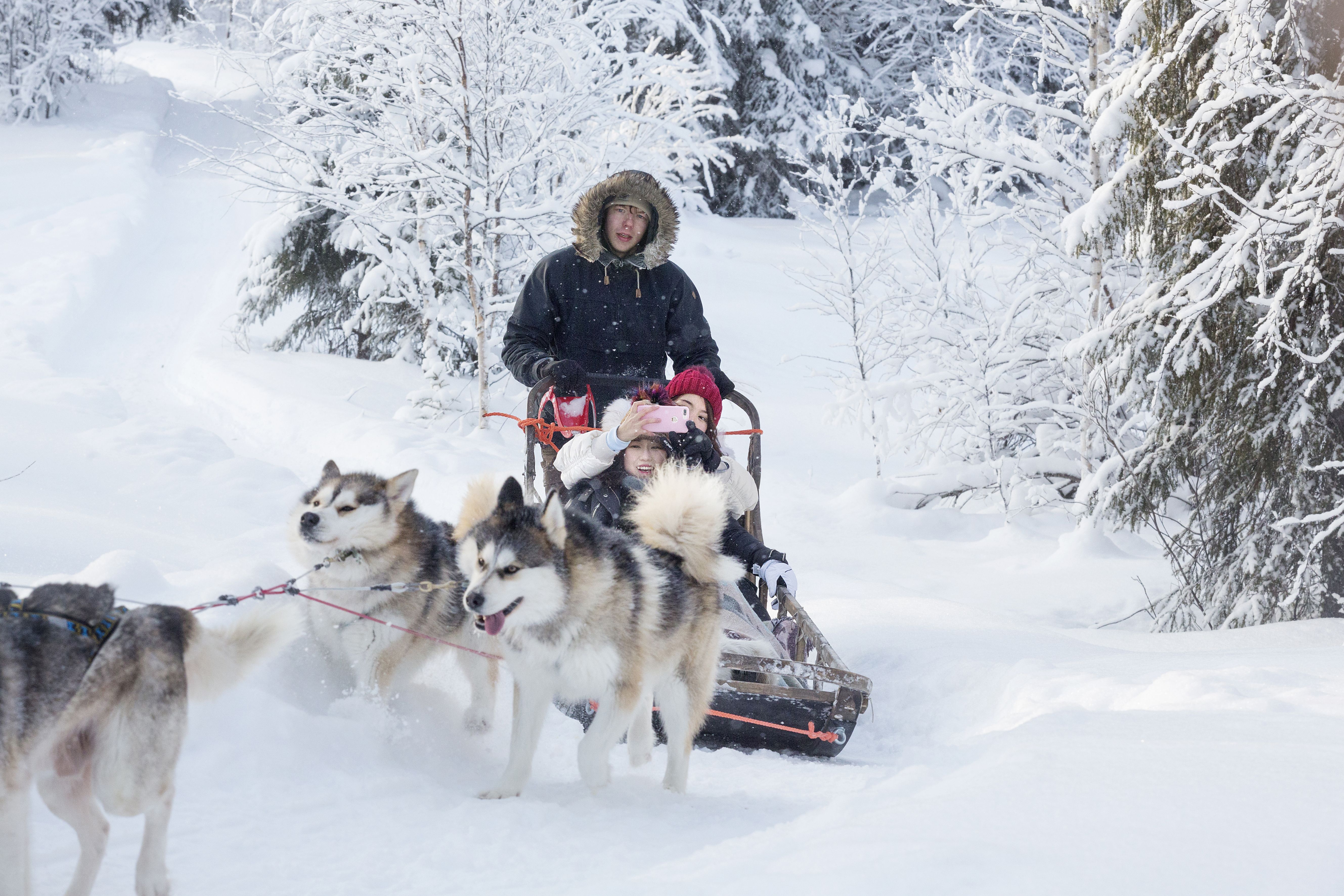 Ahkion edessä odottaa kymmenen koiraa. Lauman hyytävän tyyni alfauros on Kanadasta ostettu koirasusi, joka ei hötkyile malttamattomana niin kuin jo matkaan hinkuavat kaverinsa. Kun lähtökäsky kajahtaa, reki kirjaimellisesti lentää. Ohjastaja Jussi Holck ottaa turisteilta luulot pois jo ensimmäisessä alamäessä, joka kaartaa jyrkästi oikealle. Naisten ihastunut kiljunta leikkaa ilmaa, muuten taivaallista rauhaa ja maisemaa. Puut nyökkivät tykkylumensa alla.