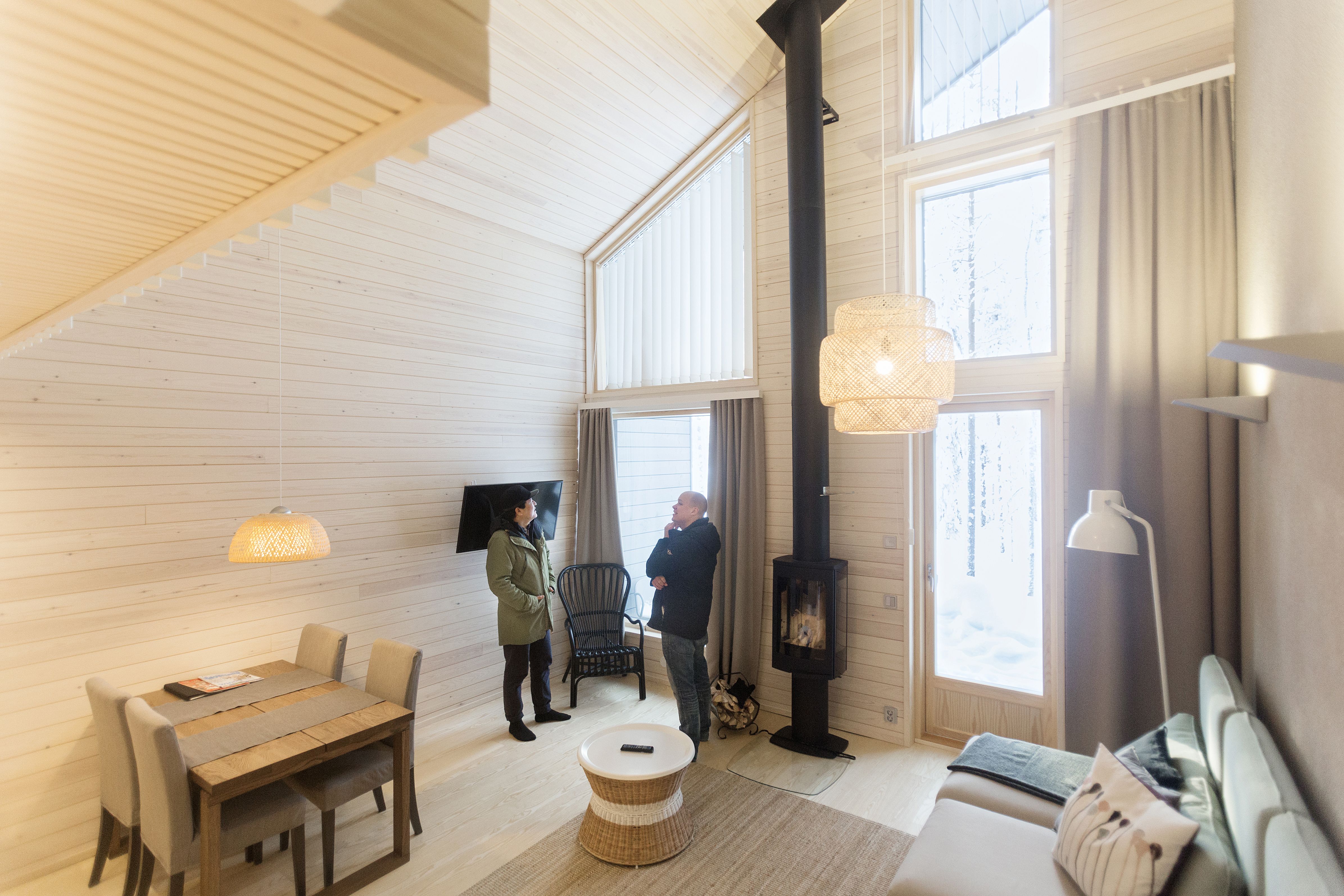 Skandinaavisesti sisustetuissa kahden kerroksen huoneistoissa revontulet loimuavat varmuuden vuoksi myös päiväpeitoissa. Huoneistoissa yöpyminen maksaa noin 500 euroa vuorokaudelta.