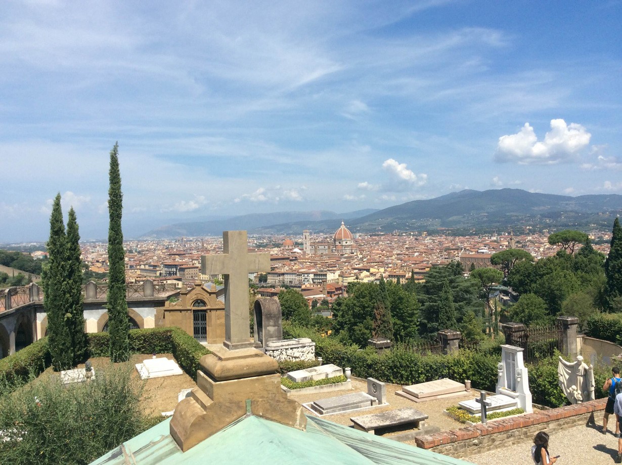 Tämä on kaupungin korkeimmalla paikalla oleva kirkko. Kirkolta on todella mahtava näköala Firenzen kaupunkiin. Duomo, kellotorni ja kastekirkko ovat täysin käsittämättömän upea rakennuskolmikko myös tästä näkökulmasta katsottuna.