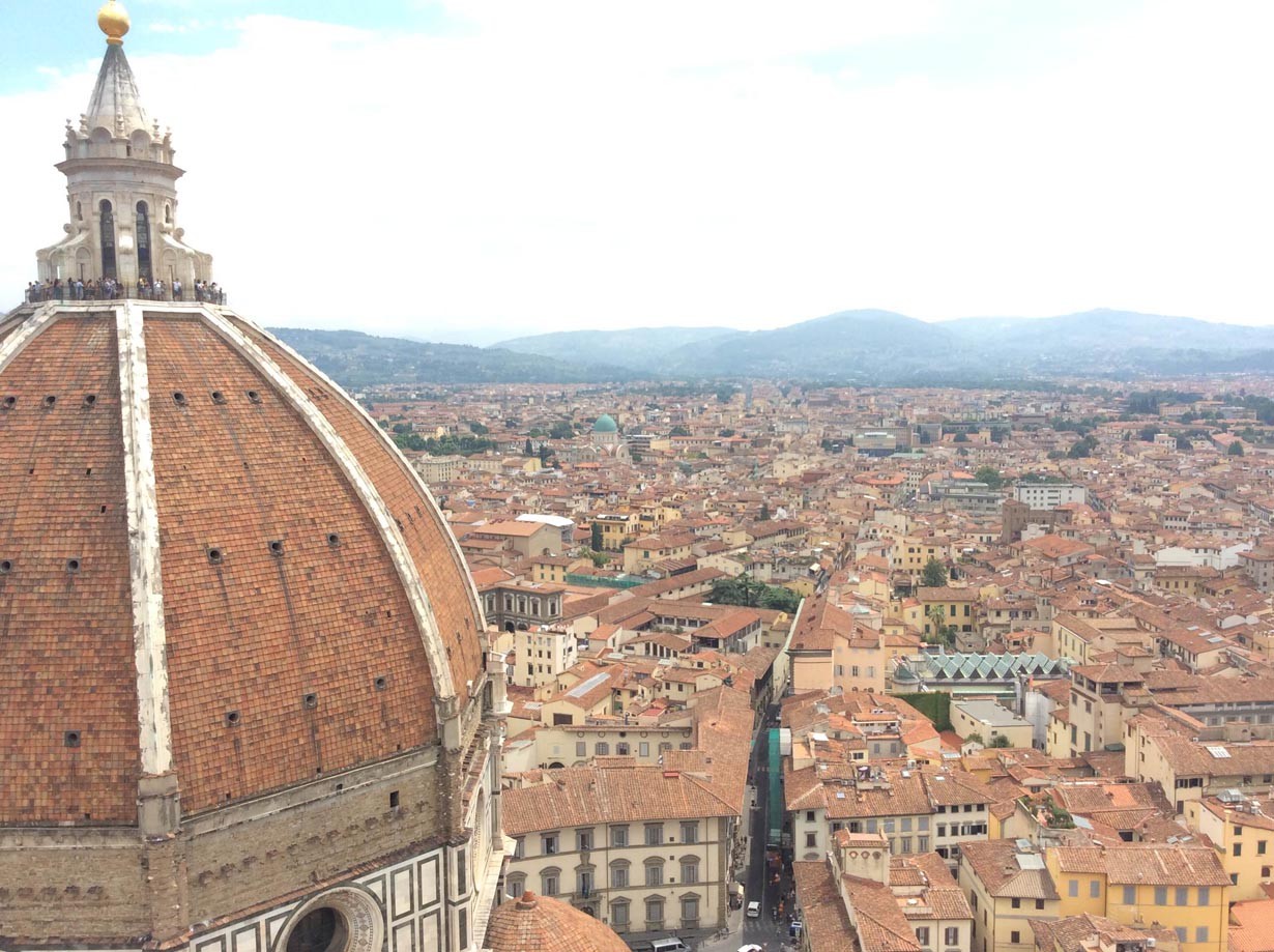 Toinen toistaan upeammat aukiot, lukemattomat kirkot, punaiset katot ja kauniit kadut ihmetyttävät pohjoismaiseen järkevään rakennustyyliin tottunutta. Puhutaan jopa Firenzen syndroomasta eli ihminen suorastaan ahdistuu, kun katsoipa hän sitten minne päin tahansa, niin aina näkee vain kauniita rakennuksia tai upeita patsaita.