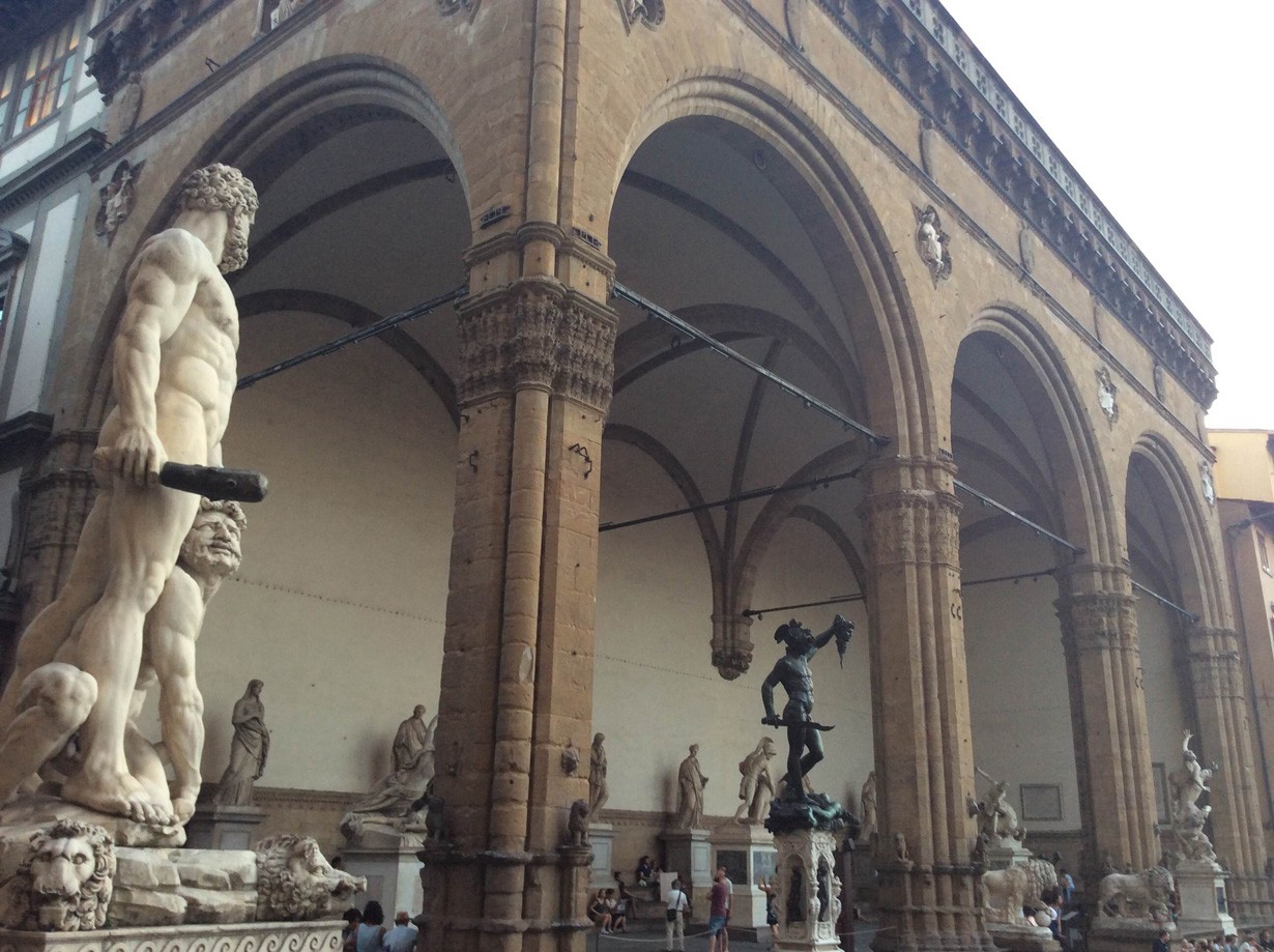 Piazza del Signoria on Firenzen pääaukio. Sieltä on lyhyt matka Duomolle ja Arno-joelle. Signorialle on kerätty monia patsaita näytille. Aukiolla on myös Firenzen kaupungintalo Palazzo Vecchio. Sen sisällä on museo, patsaita ja kellotorni. Kellotorniin ja museoon pääsee 14 eurolla.