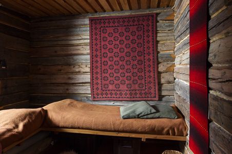 – Nämä ovat niin painaviakin, että jäivät niille sijoilleen. Osa kalusteista, kuten tupaa kiertävät penkit, on pultattu seiniin.
