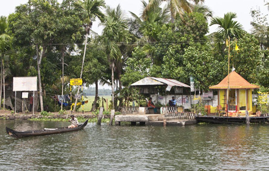 Keralan takavedet, Backwaters, ovat kanaalien, laguunien ja järvien kirjoma alue, jossa ihmiset elävät elämäänsä kapeilla maakaistaleilla, riisipeltojaan viljellen. Kaikki kulkemiset ja kuljetukset hoidellaan veneillä.