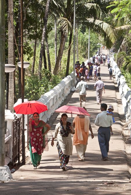 Kuja Hindu-temppeliin. Sateenvarjo on hyvä päivänvarjo, ja usein tarpeen.