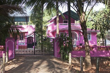 Goan indo-portugalilaista arkkitehtuuria. Totta kai talo voi olla minkä värinen vaan!