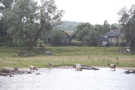 Maanläheistä tunnelmaa Syvärin rannoilla, on niin lehmiä kuin Ladojakin.