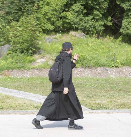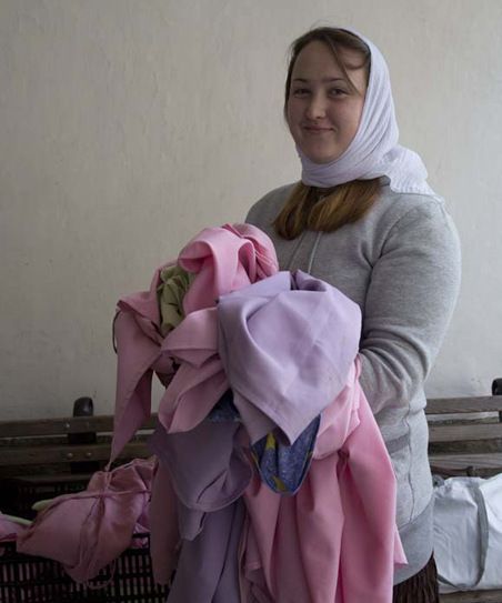 Valeria antoi naisille lainaksi huiveja ja hameita ennen Valamon Kristuksen kirkastumisen kirkkoon menoa.