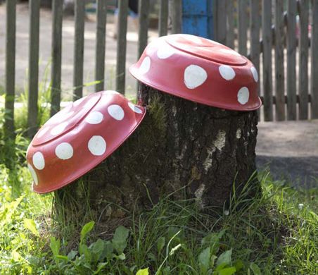 Kannon nokkaan on asetettu kärpässieniksi maalatut vadit.