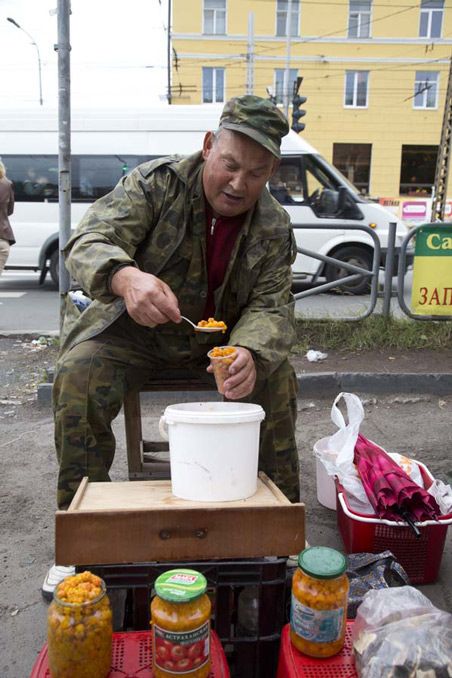 Giorgi myi itsepoimiaan lakkoja Petroskoin kadulla.