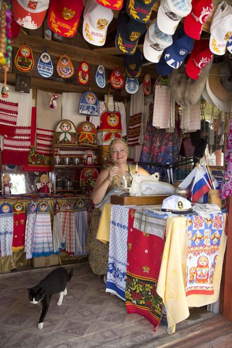 Monet Syvärin käsityökioskien pitäjistä olivat pietarilaisia, niin myös pyyhkeitä ommellut Natasha.