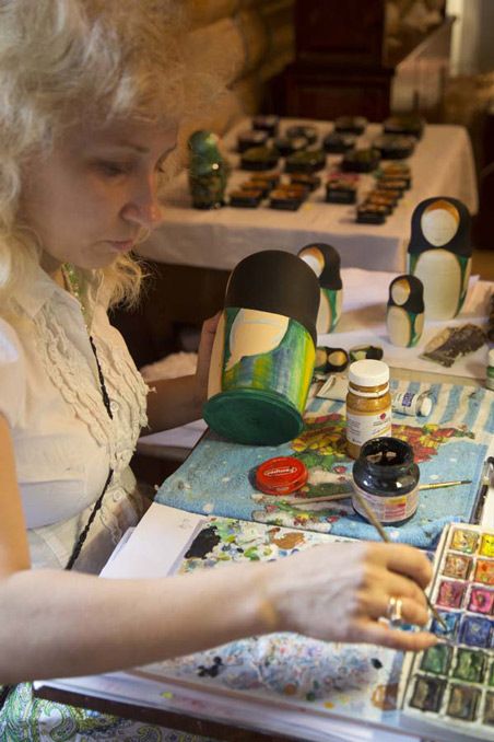 Mandrogin perinnekylässä työskentelee maan parhaimpia käsityöläisiä. Tässä tehdään käsin maatuskanukkeja.