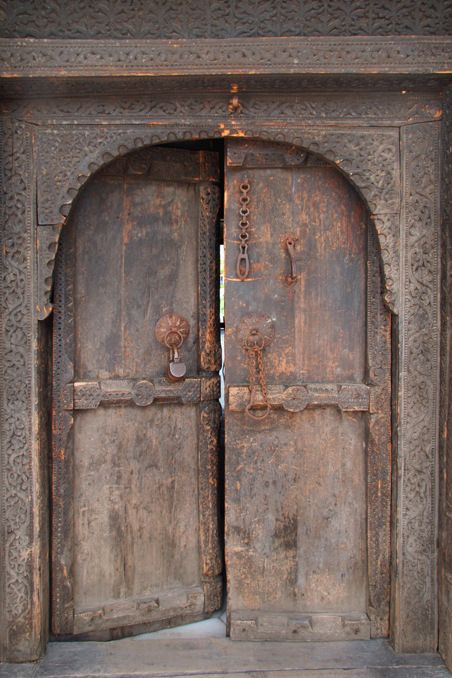 Öljymuseon ovi 1600-luvulta. Ovissa oli erilaiset kolkuttimet perheenjäsenille ja vieraille siksi, että vieraan kolkuttaessa talon naisväki ehti vetäytyä toiseen huoneeseen tai sonnustautua peittävään asuun.