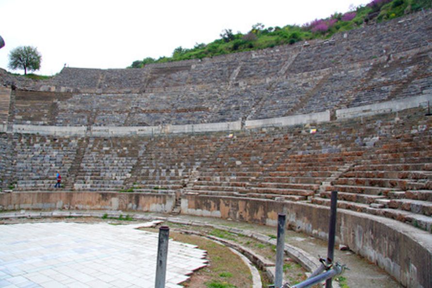 Efesoksen suureen amfiteatteriin mahtui aikanaan jopa 20 000 katsojaa 67 marmoriselle penkkiriville. Amfiteatterin rakentaminen alkoi jo 133 eaa Rooman vallan aikoina. Jokainen keisari vuorollaan kasvatti sen kokoa. Paikalta löytynyt gladiaattorien hautausmaa todistaa siellä käydyn myös gladiaattoritaisteluja.
