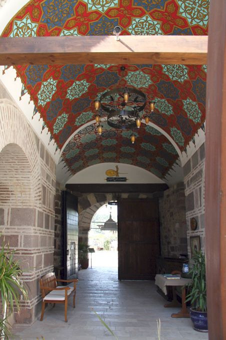 Cesmen vanha karavaanisuoja on muutettu ylelliseksi hotelliksi, jossa voi yöpyä muun muassa "sulttaanin sviitissä". Valitettavasti ilman sulttaania :-) Kuvassa hotellin sisäänkäynti.