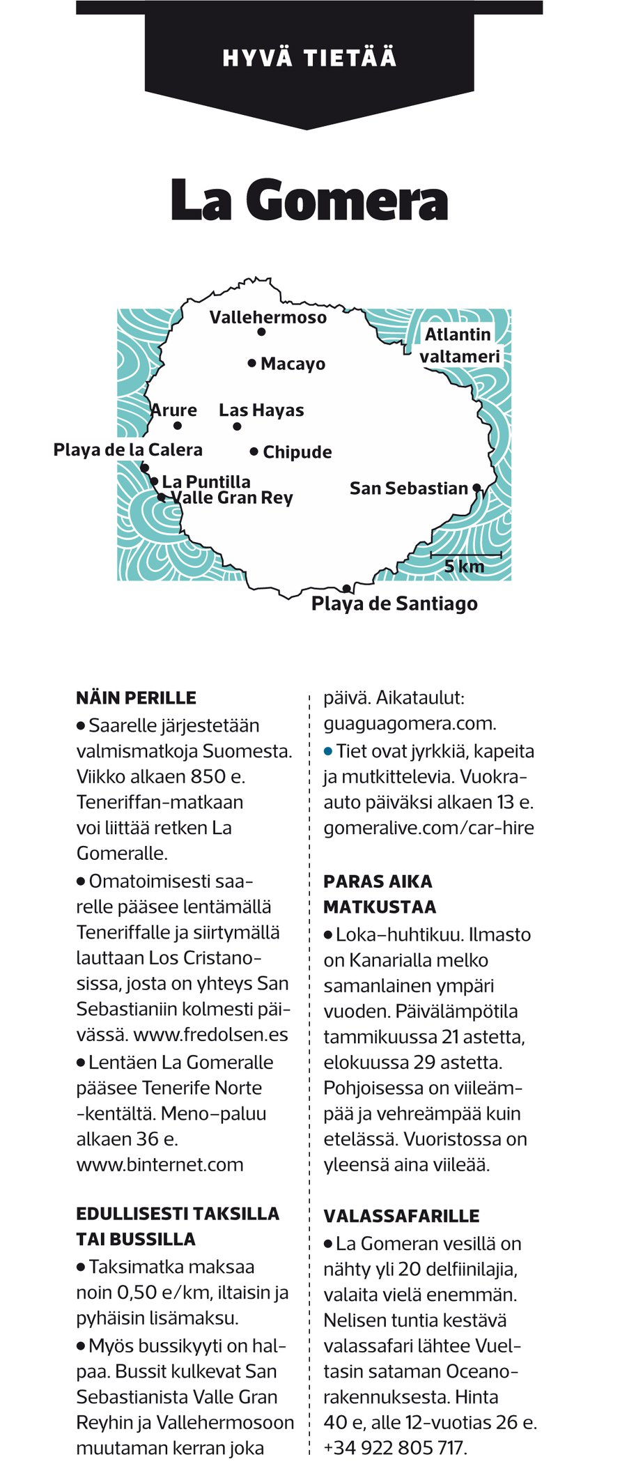 Kiinnostaako rauhallinen ja liikunnallinen luontoloma La Gomeran saarella? Lauttamatka Teneriffalta kestää alle tunnin.