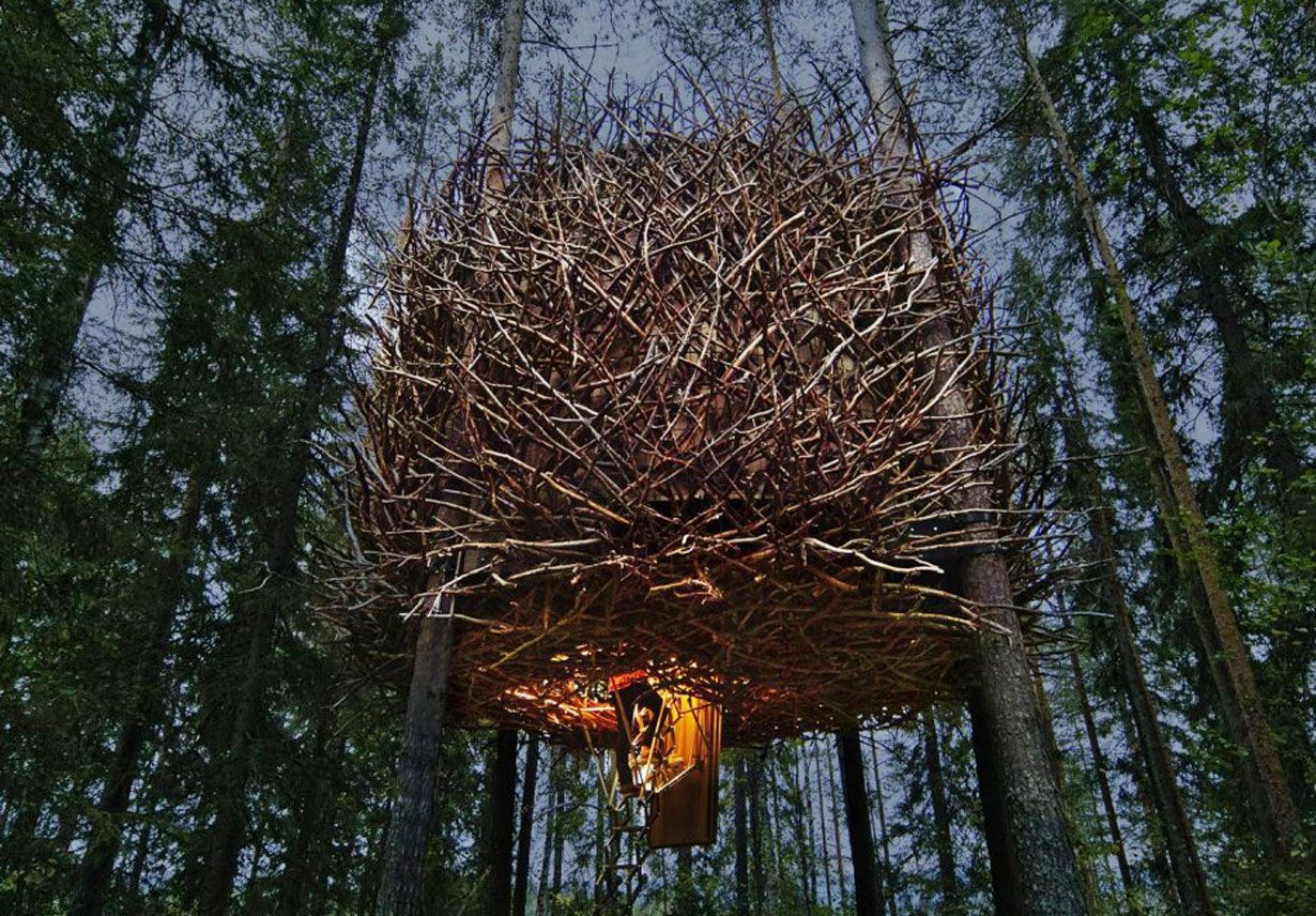 - Ruotsin Bodenissa Tornion korkeudella on mielenkiintoinen Tree hotel, jonka kaikki kuusi majapaikkaa ovat ylellisiä ”majoja” puussa