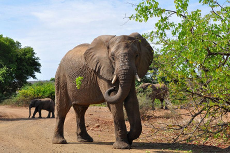 Tien laitaa käveli vastaamme leijona. Se oli naaras, selitti opas, ja sen paisuneista nivelistä näki, että se sairasti tuberkuloosia. Vähän myöhemmin seisoimme elefantin vieressä. Kun illan pimetessä palasimme kohti lodgea, tiellä makasi kaksi suurta urosleijonaa. Kirahveja ja antilooppeja näimme yllin kyllin jo tulomatkalla.