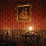 Kellariravintolan sali on puolillaan hyvin pukeutunutta ja keski-ikäistä berliiniläistä. Viini näyttää maistuvan.