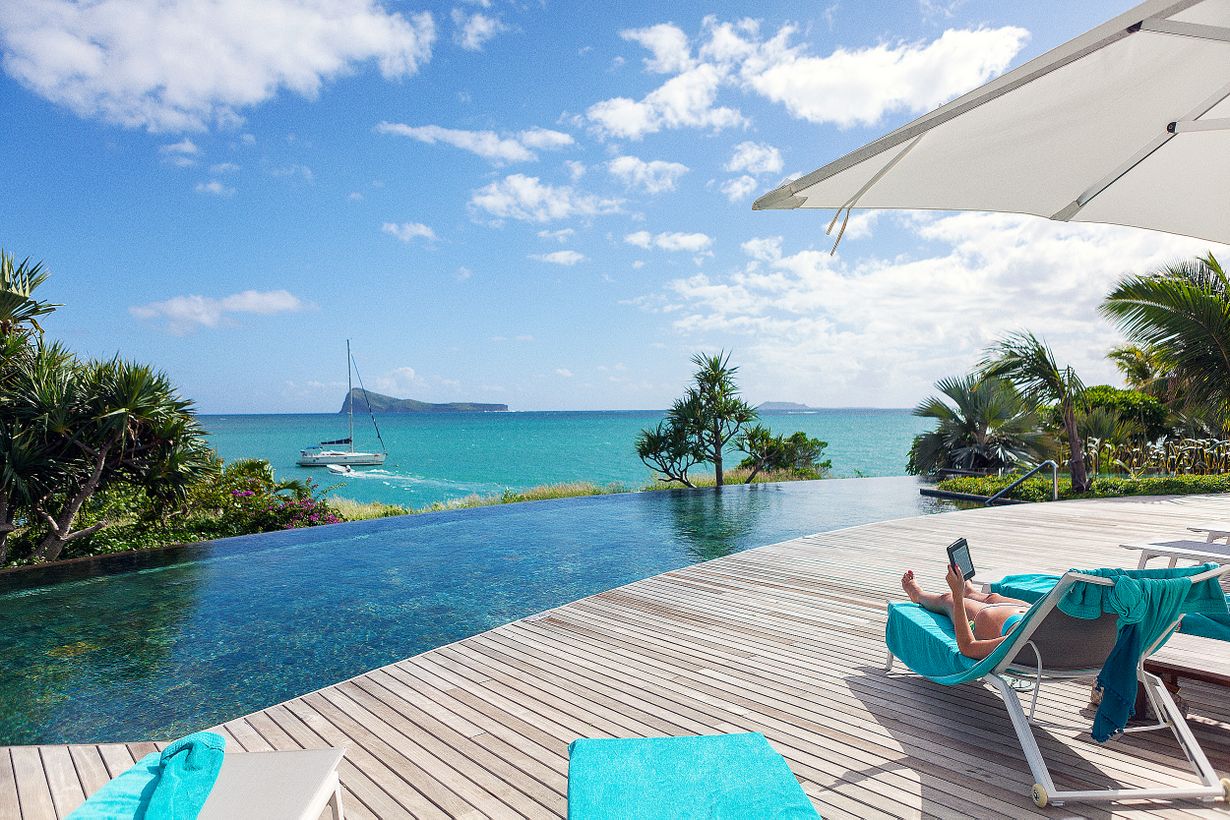 Katamaraani liukuu purjeet pulleina Île aux Cerfsin paratiisisaaren edustalla. Vesi koralliriutan suojaamassa laguunissa on kristallinkirkasta ja häivähtää hempeästi vihreään. Lojumme etukannella ja annamme auringon paahtaa hipiää. Tuulenvire vilvoittaa siinä määrin, ettei loikoillessa tule liian kuuma.