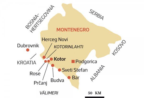 Kun istun lähempänä puolta yötä lämpimässä illassa Kotorin vanhankaupungin katuterassilla, tunnen olevani juuri sopivan oloisessa ihmisvilinässä. Katselen vuorilla kiemurtelevaa valonauhaa, joka päiväsaikaan näkyy Venetsian hallinnon aikaisena mahtavana muurina, Kotorin symbolina.