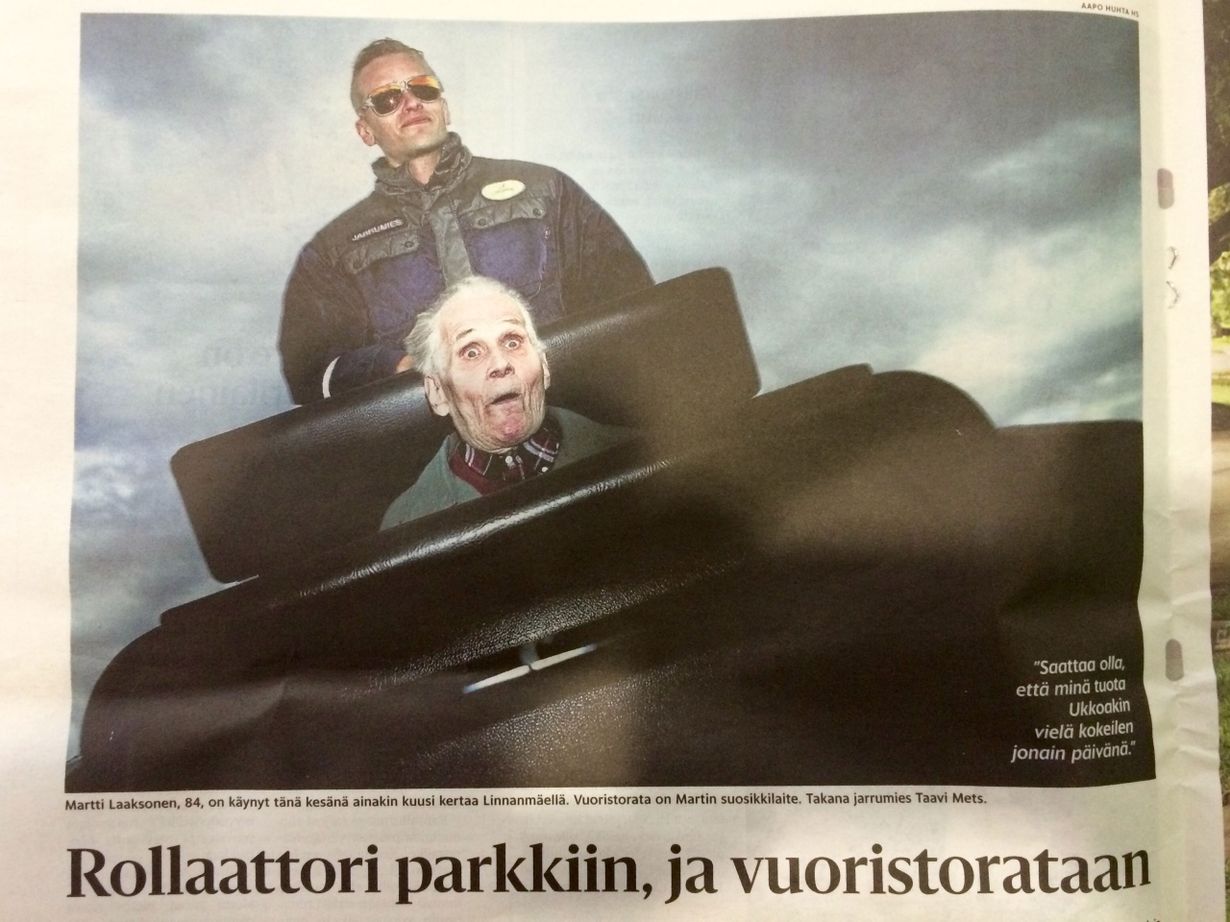 Helsingin Sanomat kertoi 3.8. Martti Laaksosesta, 84-vuotiaasta Linnanmäen vakikävijästä. Kesän kuudennella Linnanmäki-visiitillään ollut Laaksonen kertoo jutussa, että hänen suosikkilaitteensa on puuvuoristorata. Sen kyytiin on päästävä monta kertaa kesässä.