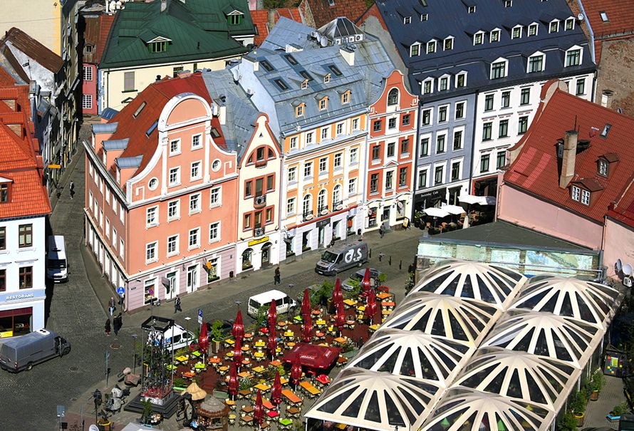 - Riian historiallinen charmi aukeaa parhaiten Pyhän Pietarin kirkon tornista. Sieltä voi ihailla vanhan hansakaupungin komeaa sijaintia Väinäjoen varrella, tiivisrakenteisia kortteleita ja arkkitehtonisia helmiä. Näköalaterassi on 72 metrin korkeudessa, hissimaksu on 7 e. Osoite Skārŋu iela 19.
