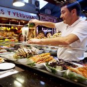 Mainio valinta pieneen nälkään. Erinomaisia viinejä ja kohtuuhintaisia, suussa sulavia Välimeren pikkuherkkuja. Paikka sijaitsee jugendkorttelissa.