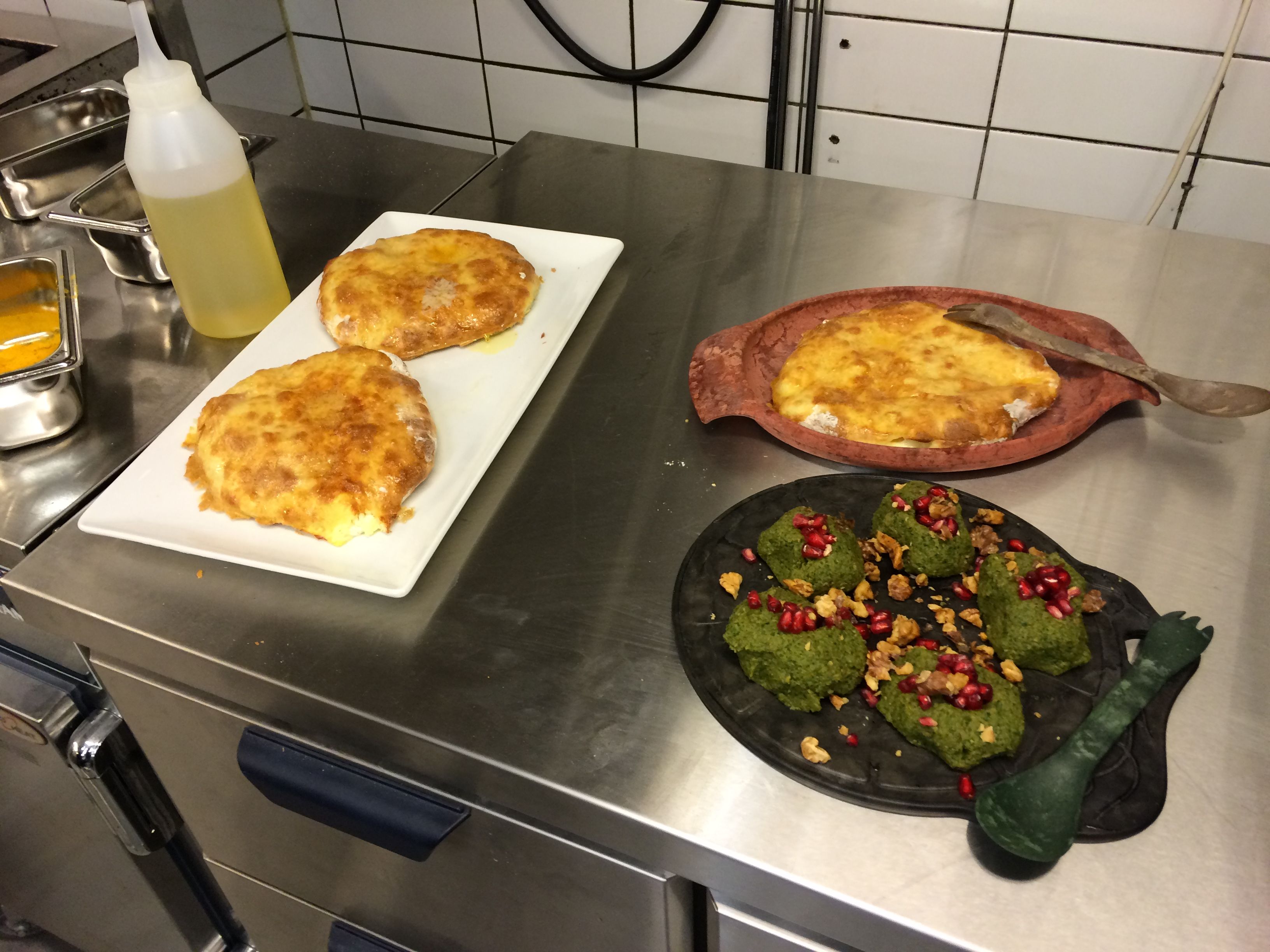 Georgialaisessa ravintolassa on tapana, että alkupaloja ei viedä pois, kun lämmin ruoka tulee pöytään. Niitä syödään koko aterian ajan lisukkeena.