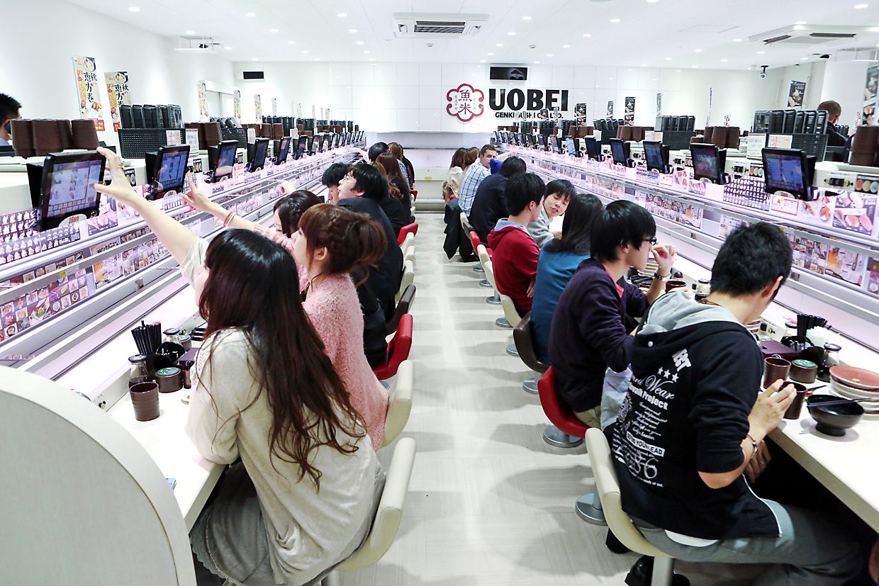 Haluan heti keskeisen ostos- ja huvittelualue Shibuyan ytimessä sijaitsevaan Uobein sushiravintolaan. Naputtelen tilauksen nenäni eteen asemoidulle näyttöruudulle. Mittava valikoima esitellään kuvin, ja sushit ovat häkellyttävän edullisia, eurosta kolmeen annos.