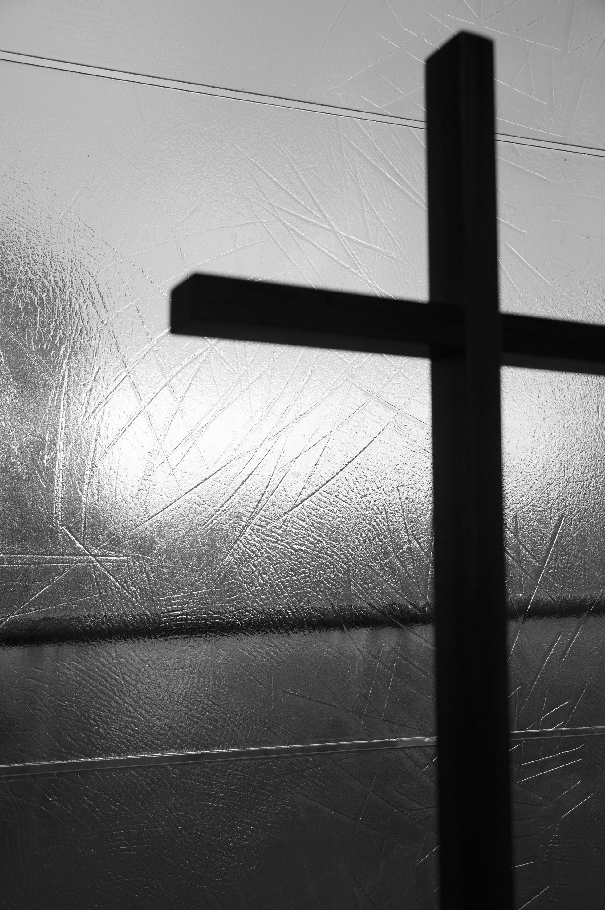 Konolan kädenjälki näkyy yli 10 metriä korkeissa valoaukoissa. Teosten rosoinen jääpinta ”sulaa” hetken tarkastelun jälkeen, ja silmä alkaa löytää sanoja ja hahmoja. Alttarista vasemmalla on kärsimystä kuvaava Passio. Paitsi Kristuksen haavoja, Konola kuvaa siinä meidän jokaisen elämän varrella saamia viiltoja.