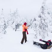 Onneksi pari on liikkeellä kevättalvella. Jos he olisivat hiihtäneet täällä yhtä huolettomasti pari kuukautta aiemmin, he olisivat päätyneet tunturiin pilkkopimeällä.