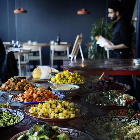 Cáfe Heila. Vitriini täynnä lähiruokaa. Maista suolapalaksi täytettyä ruisleipää.