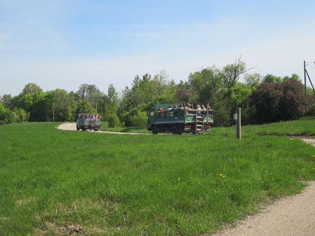 Turistit pääsevät huristelemaan Kihnun opastetun kierroksen kuorma-auton lavalla.