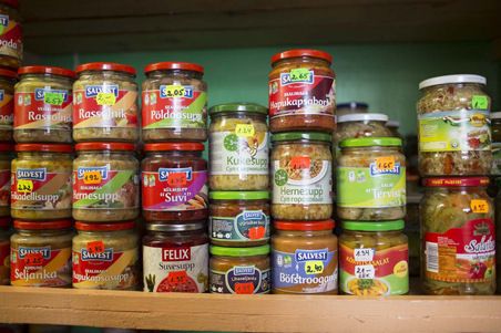 Virolaiset lasitölkissä myytävät säilykekeitot ovat edullisia ja herkullisia karavaanaarien ja telttailijoiden matkaeväitä.